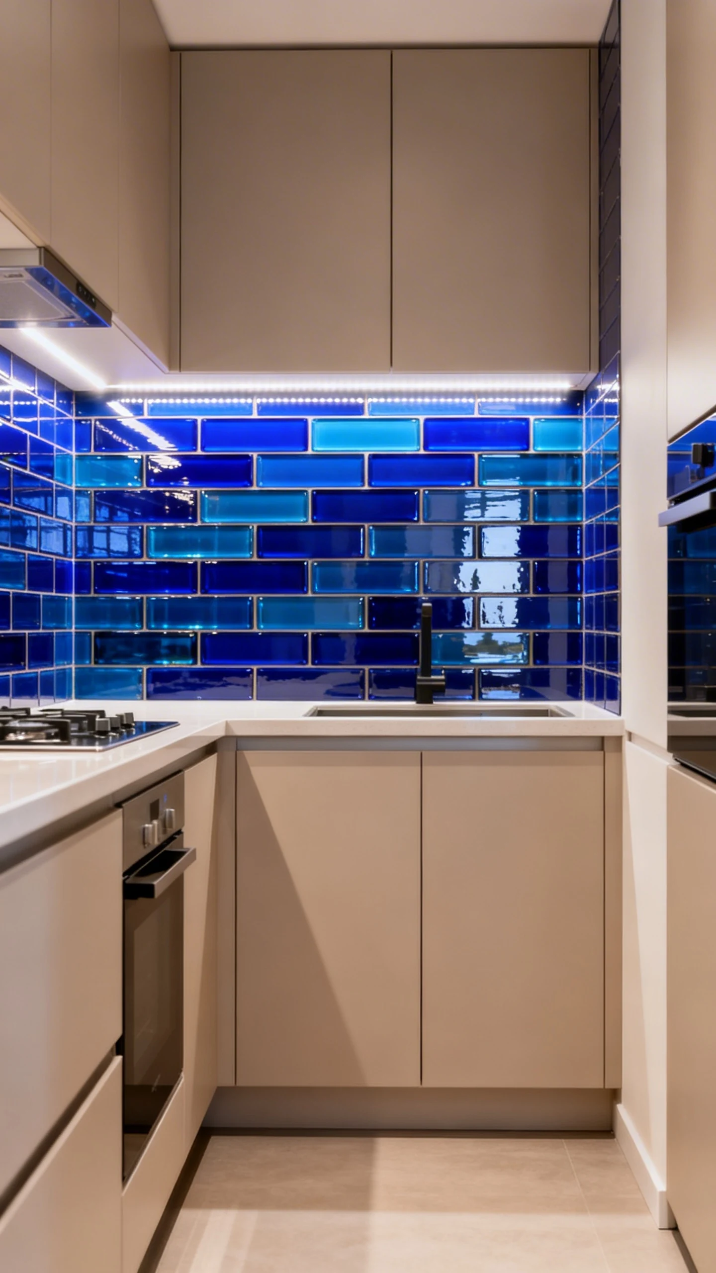 Glass tile loves saturated color, especially when paired with neutral cabinets. Think of it like lipstick for your kitchen—one bold swipe and suddenly everything looks more put together.