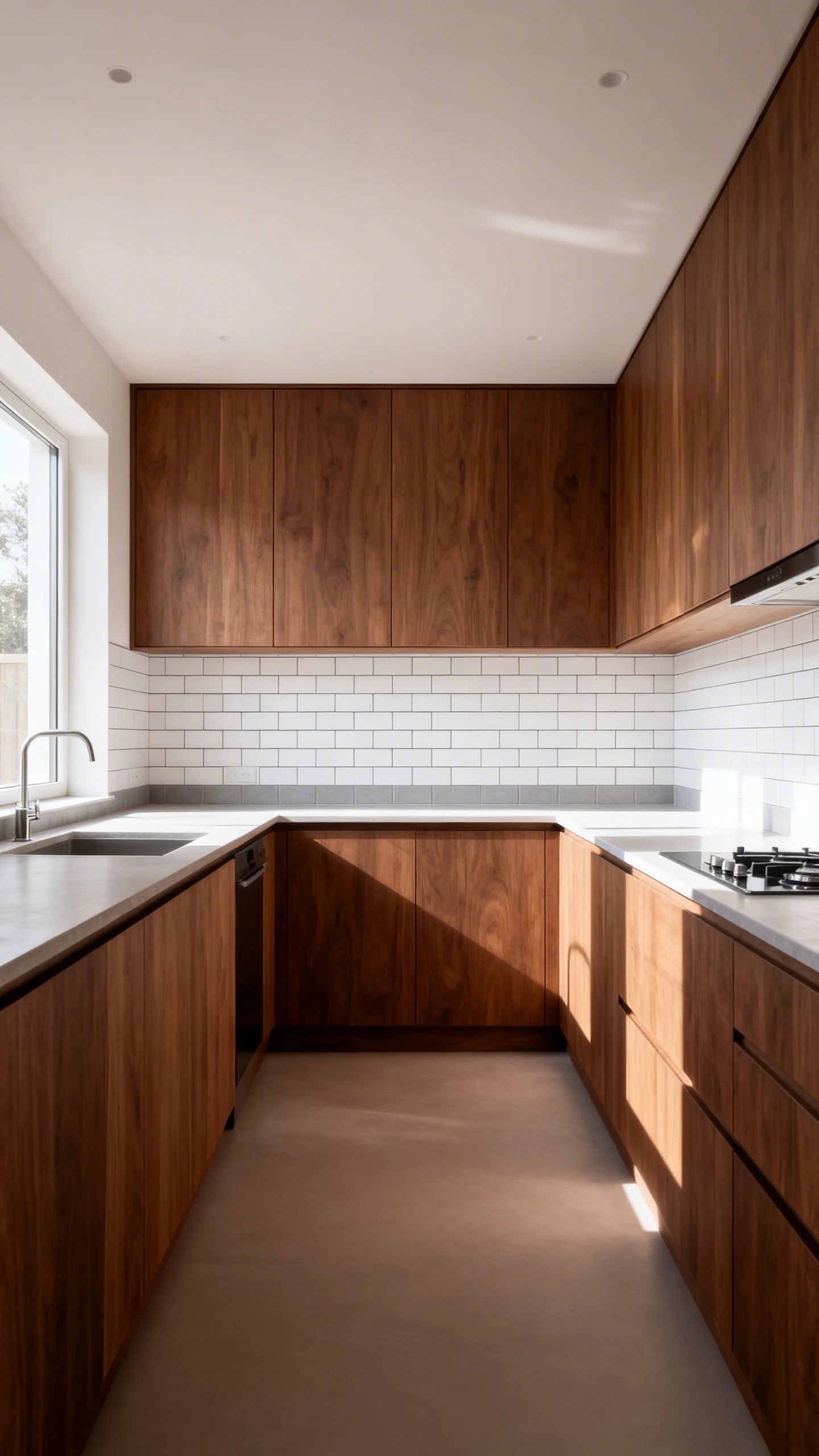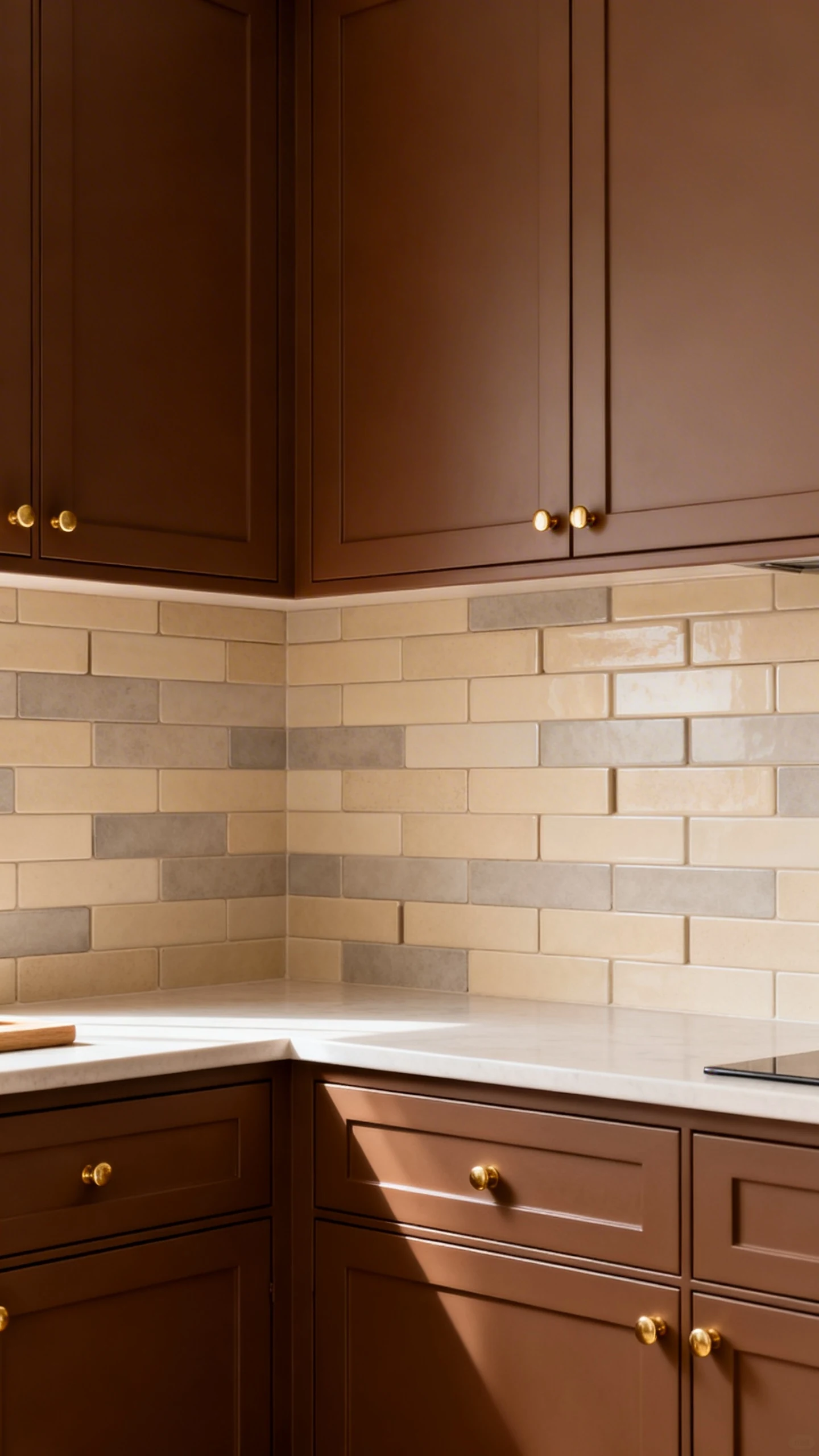 If stark white feels too sharp, go creamy. A beige backsplash or greige backsplash plays nicely with brown cabinets and gives you that layered, designer-y warmth.