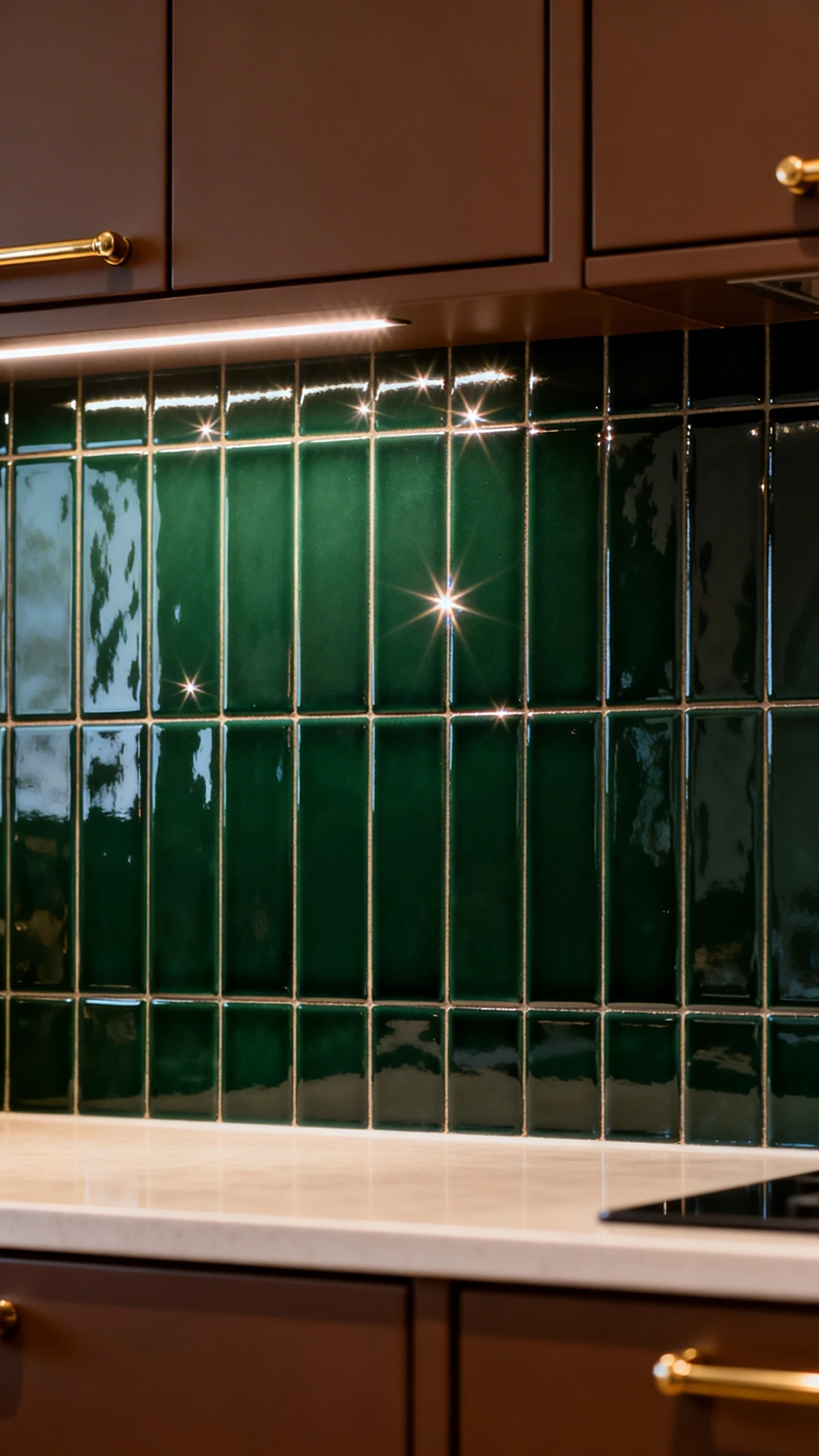 • Add under-cabinet lighting so the backsplash actually sparkles.