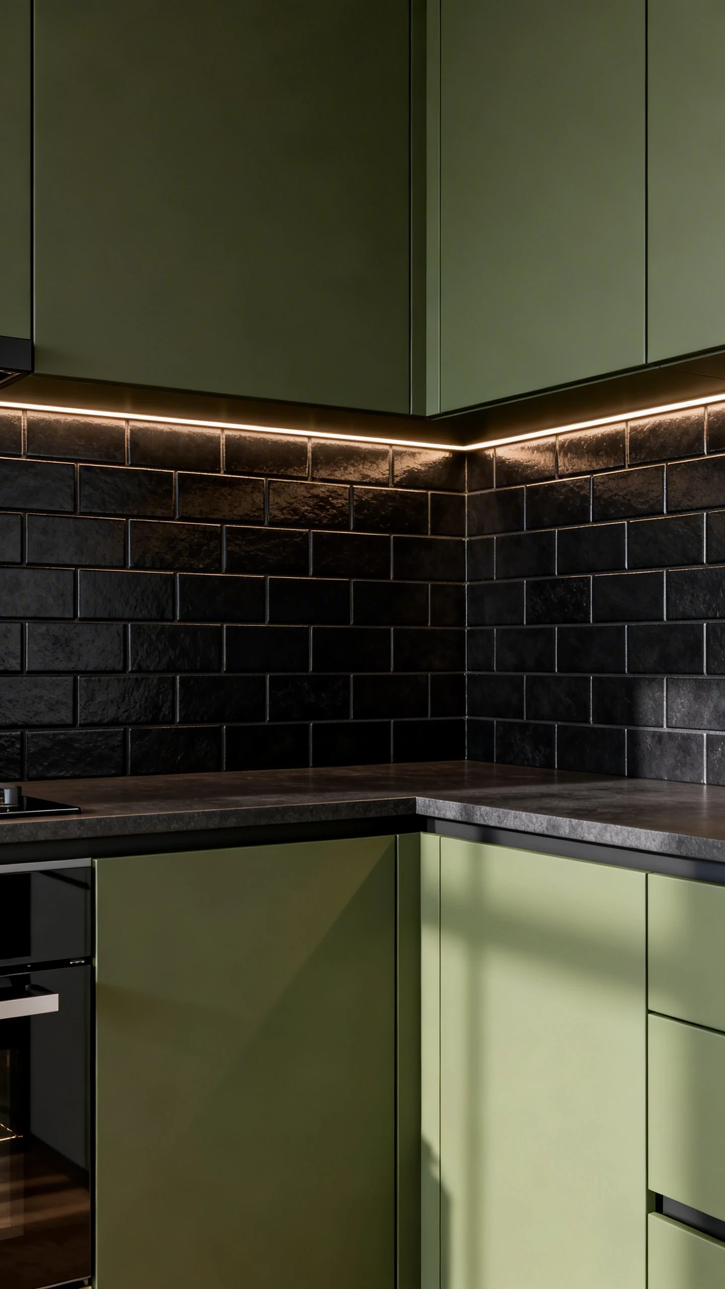 3. Try A Moody Charcoal Or Matte Black Backsplash (For The “Sage But Make It Edgy” Crowd)