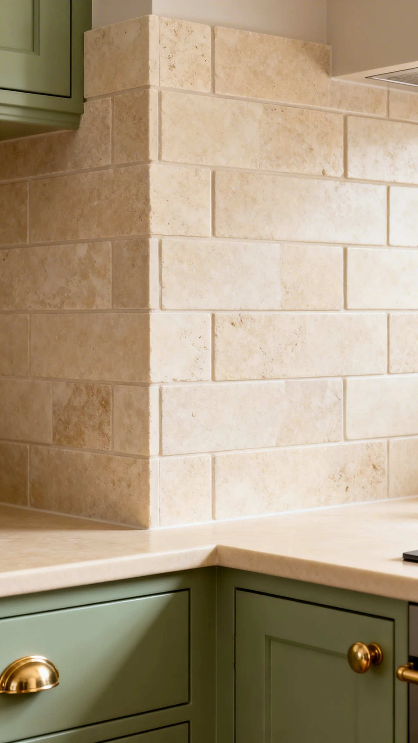 If you want your kitchen to feel warm and collected, like you casually picked everything up in a charming little shop somewhere in Europe, consider travertine or natural stone tile. Sage green cabinets + stone = earthy perfection.
