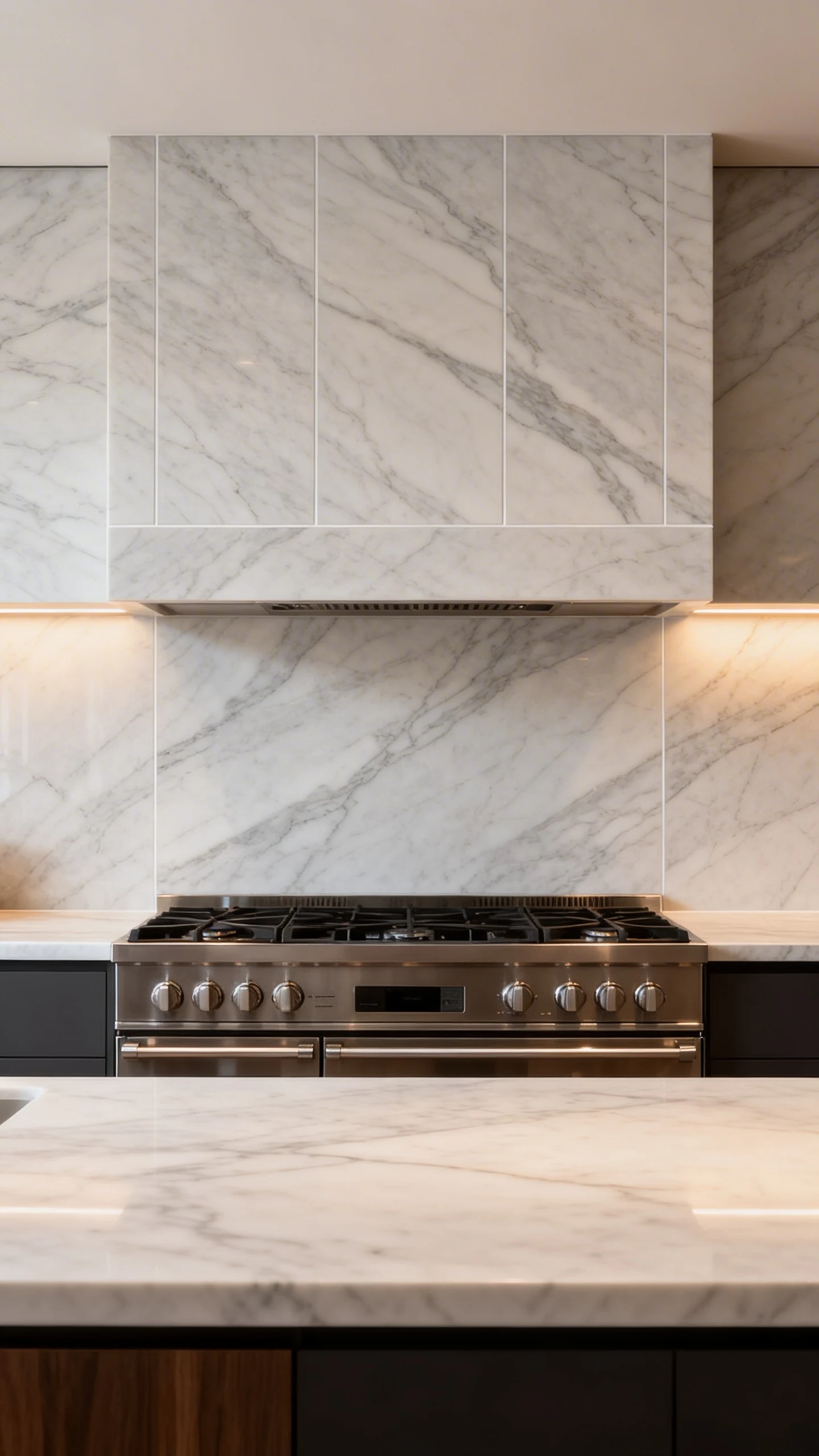 One caution: if your counters already have wild veining, consider a calmer slab for the backsplash. Unless you’re going for “kitchen casino,” in which case… you do you.