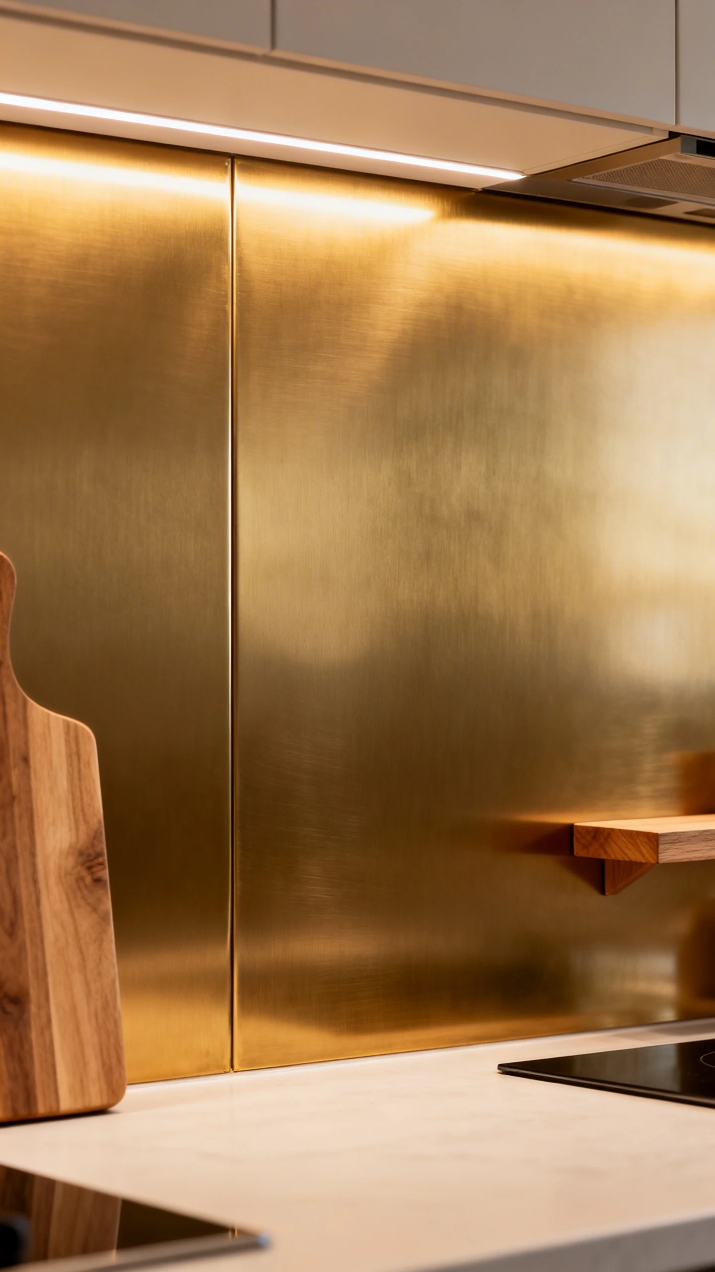 - Brushed brass panels for warmth and a glam touch.