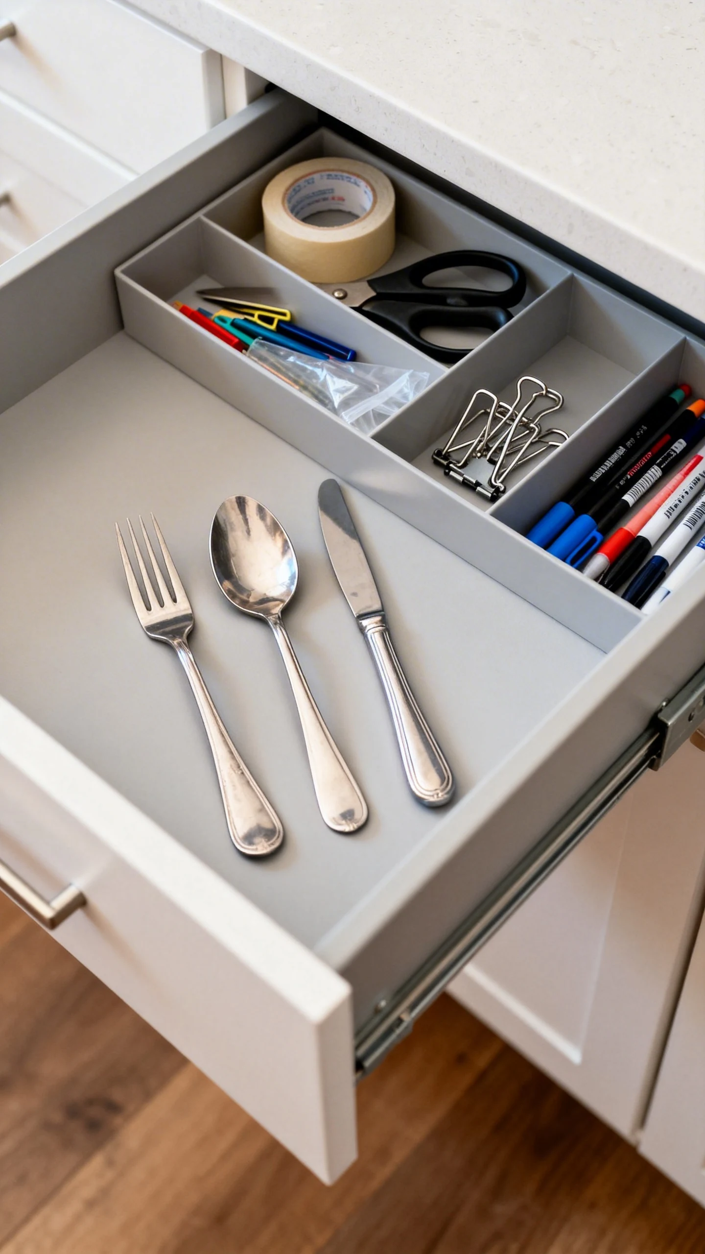 If you use the same three utensils every day, make those easiest to reach. If your junk drawer is doing essential life work, keep it, just give it some structure. Realistic systems last longer, and honestly, they’re way less annoying.