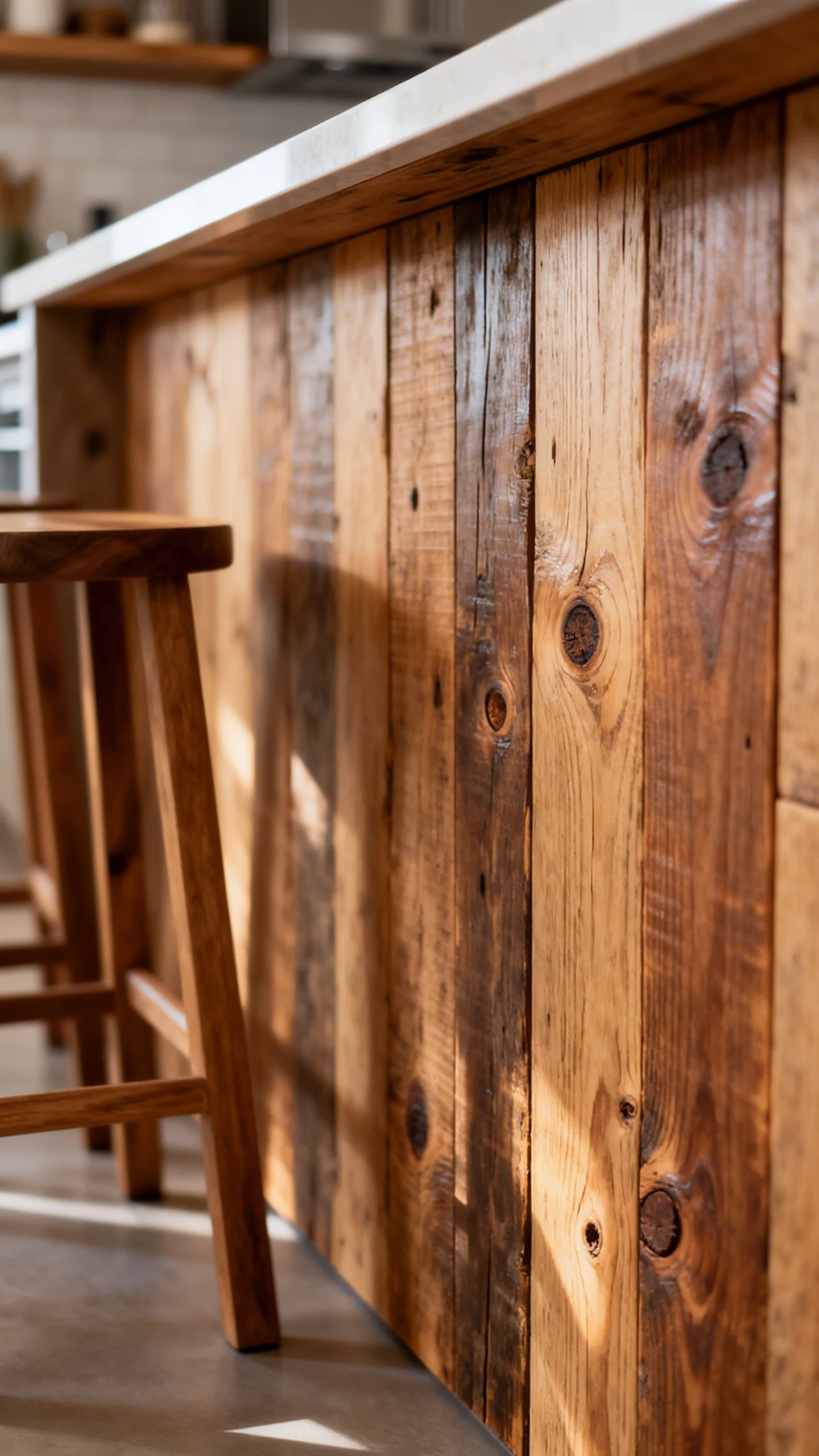 Reclaimed wood brings knots, grain, and variation—basically built-in personality. It pairs beautifully with white kitchens, black-and-white schemes, and anything that needs a little softness.