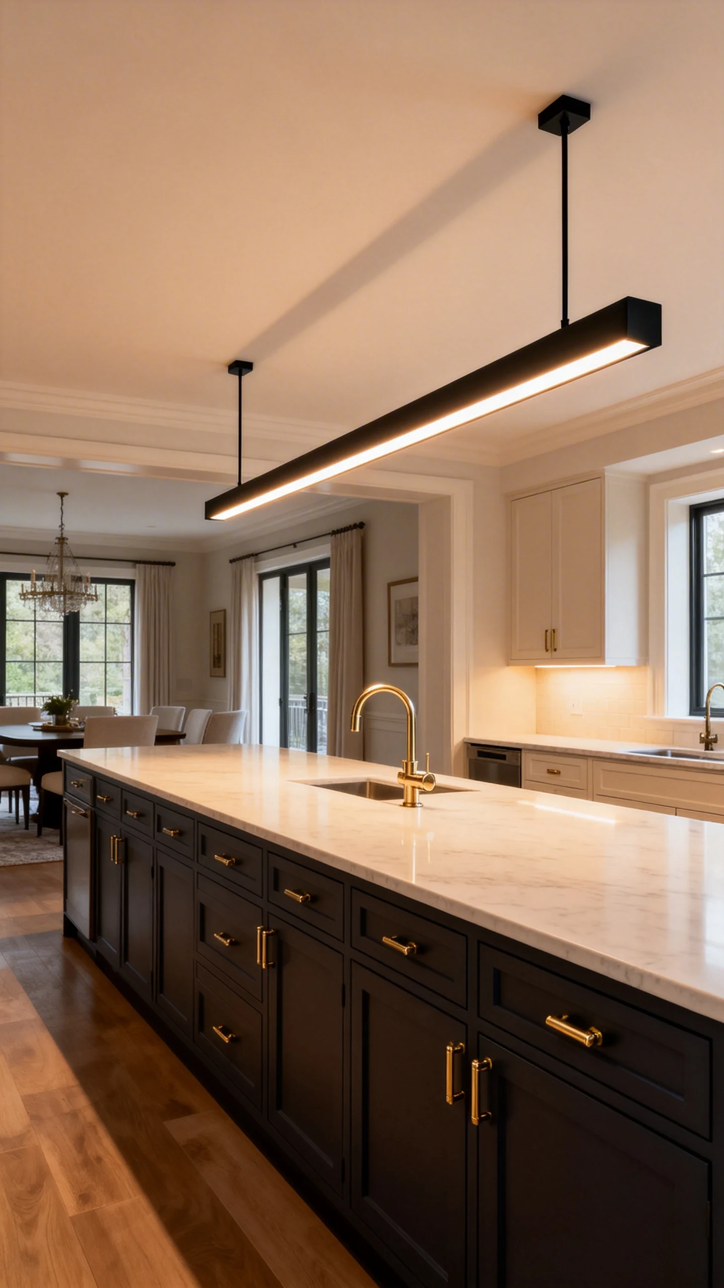 If pendants feel fussy or you have a long island, a linear fixture is the sleek, grown-up move. It reads intentional, architectural, and just a little bit smug. In a good way.