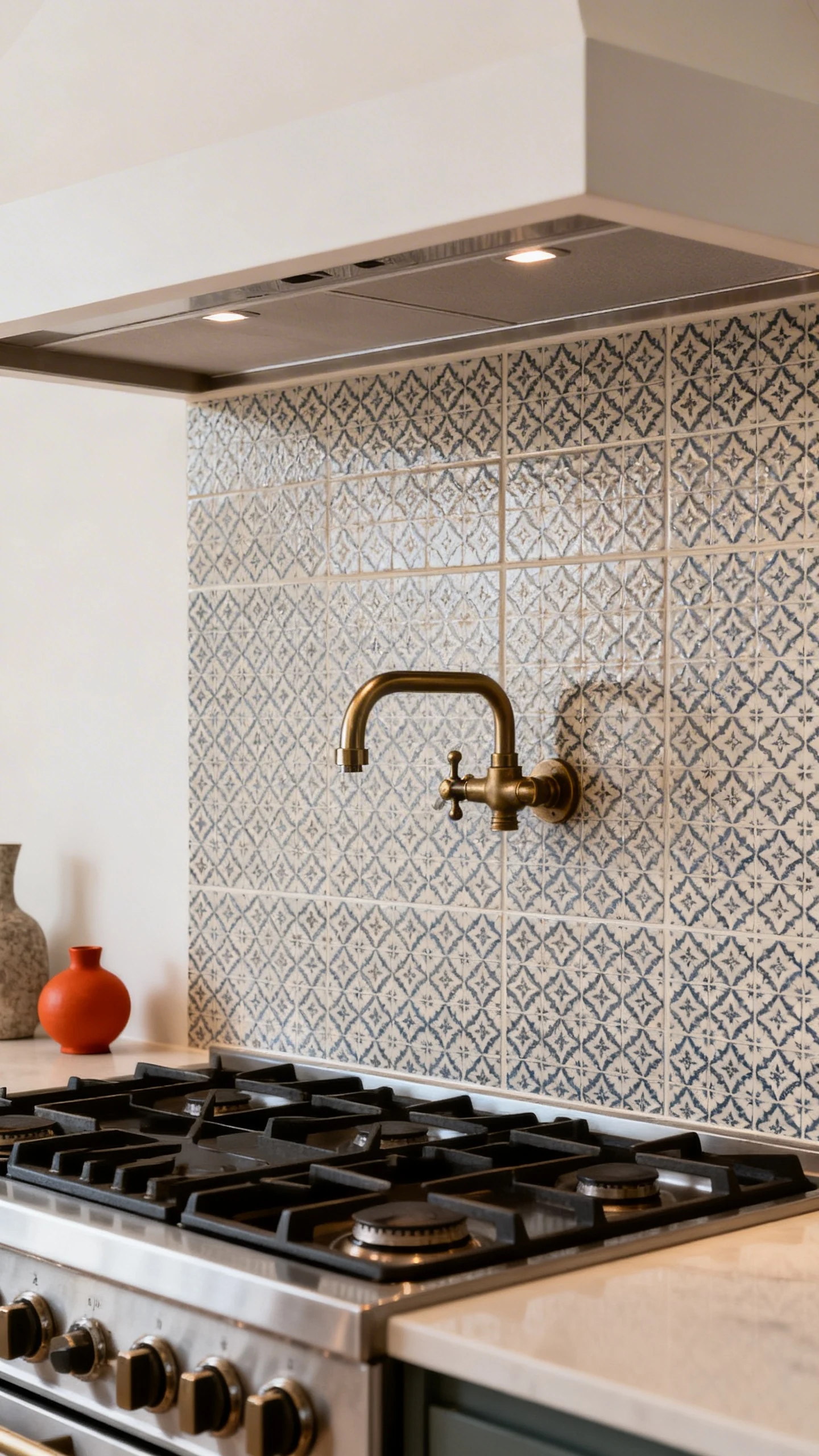 3. Add a Pot Filler Wall With Patterned Tile (Your Stove Deserves Jewelry)