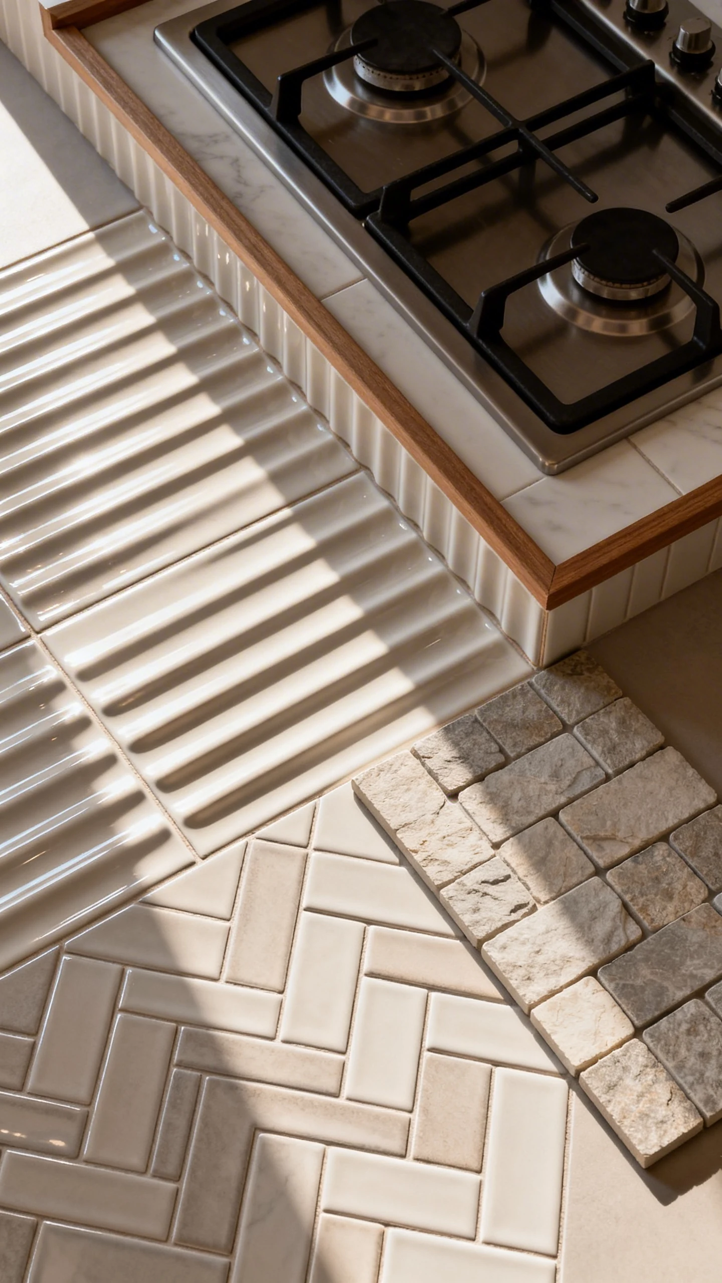 - Fluted or reeded tiles for subtle dimension.