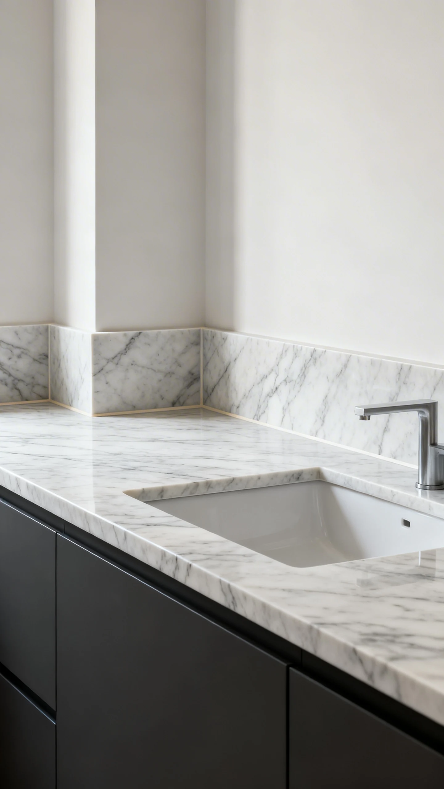 You can do a short 4–6 inch upstand, or go taller in key areas. Either way, it feels seamless and fancy.