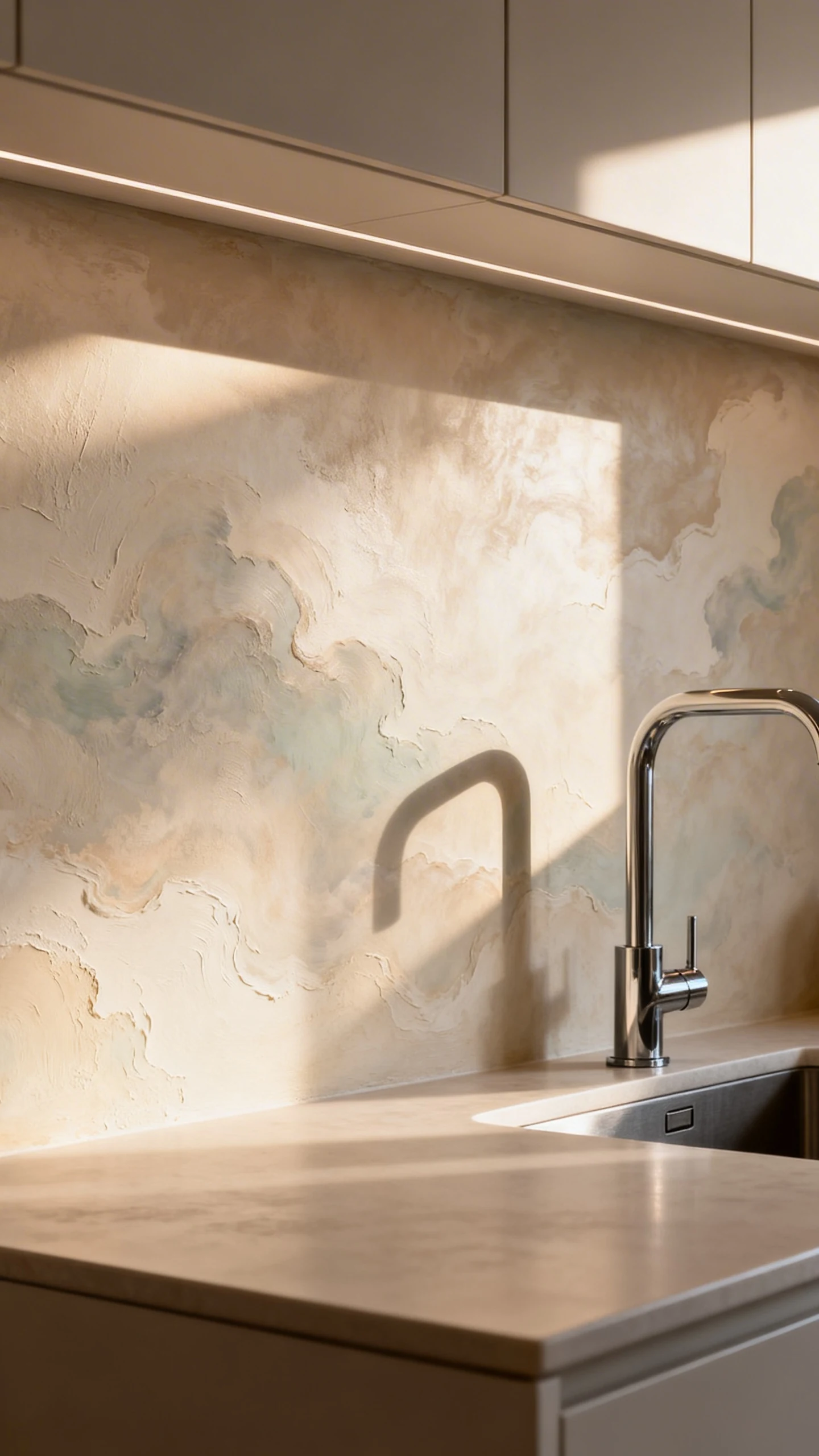 If you’re doing texture, keep your accessories simple. Let the wall do its thing. A calm counter, streamlined faucet, and minimal decor will make the texture look elevated instead of busy.