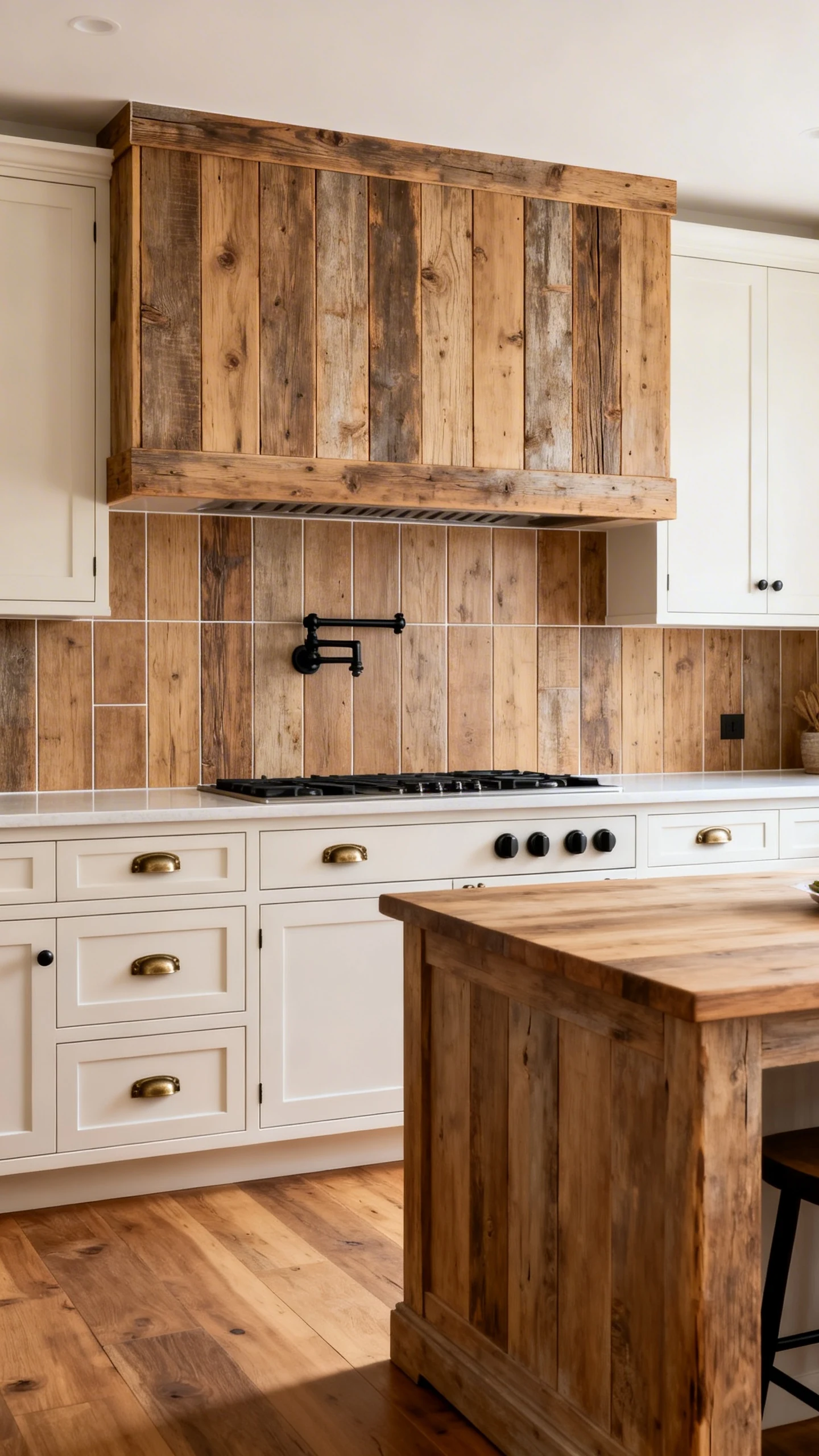 But let’s be smart: actual wood as a backsplash can be a maintenance drama. The workaround is using materials that look like wood but behave like adults.
