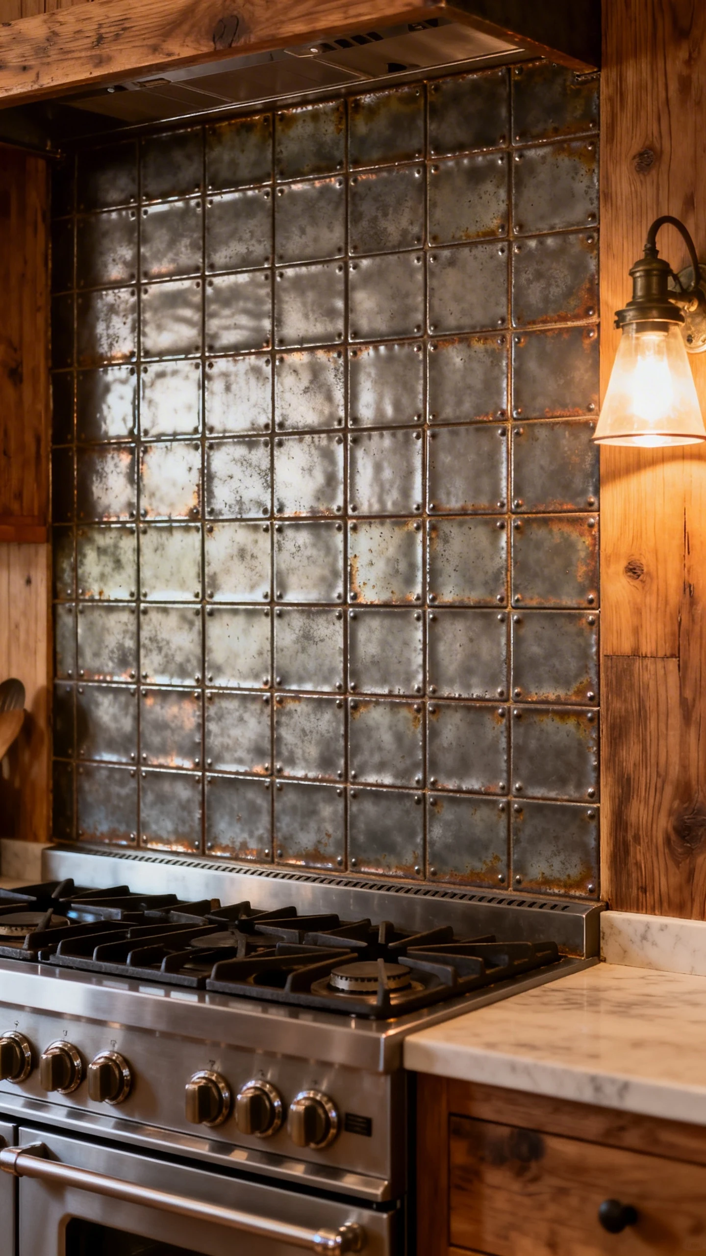 If you want rustic with a little edge, go for a vintage-inspired metal backsplash. Tin tiles, hammered copper, patina finishes—this is the stuff that makes people say, “Wait, where did you get that?”