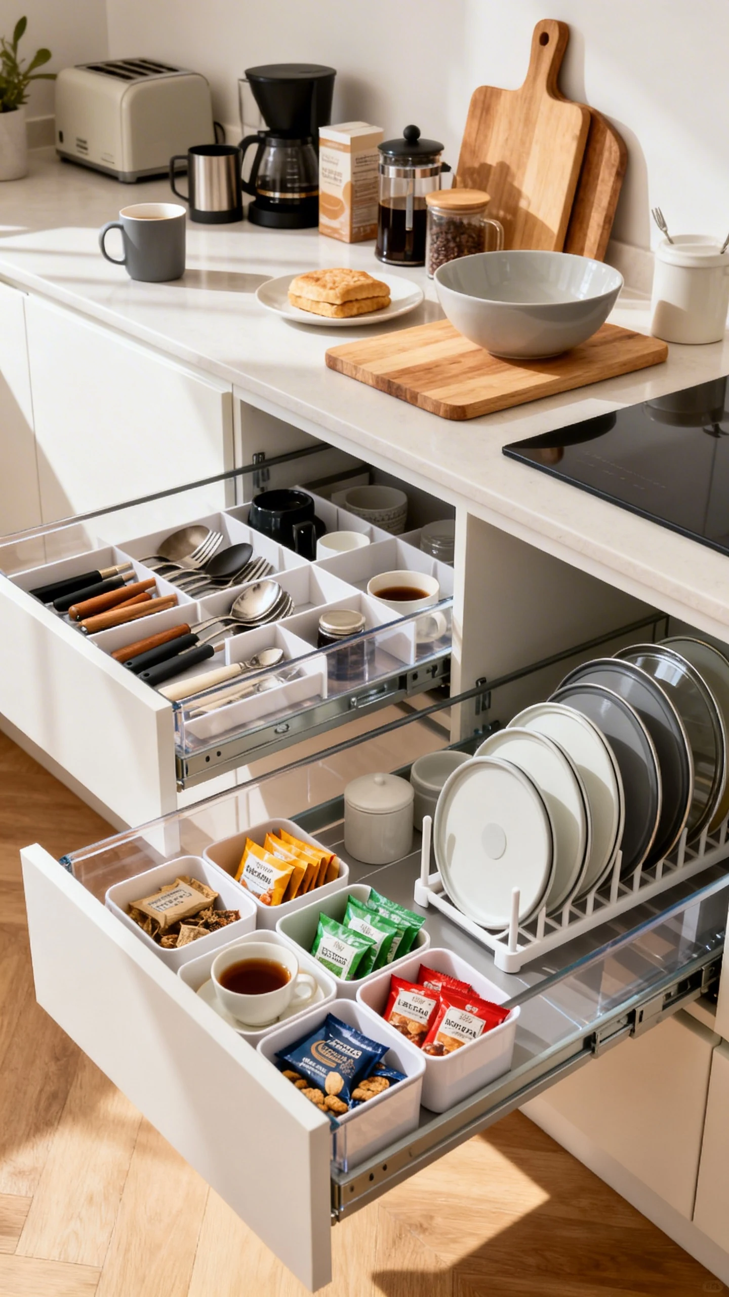 Once you assign zones, give your drawers some structure. Otherwise everything slides around and you’re back to chaos by Tuesday.