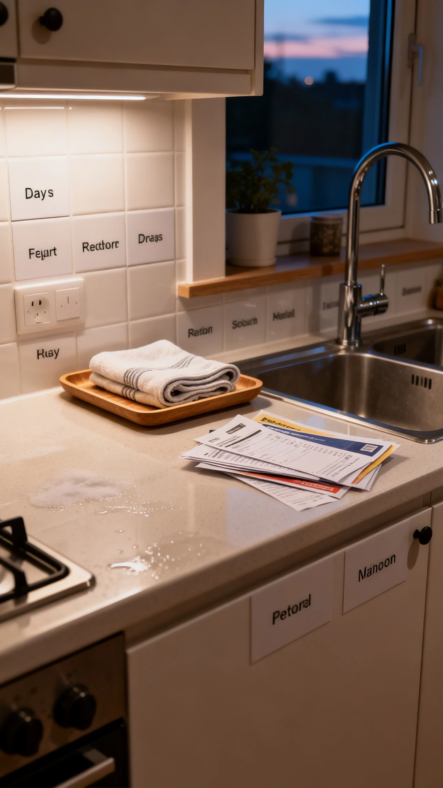 Take five minutes at the end of the day to reset the space. Put items back in their zones, wipe the counters, and deal with the mail, receipts, or random nonsense that somehow wandered in.
