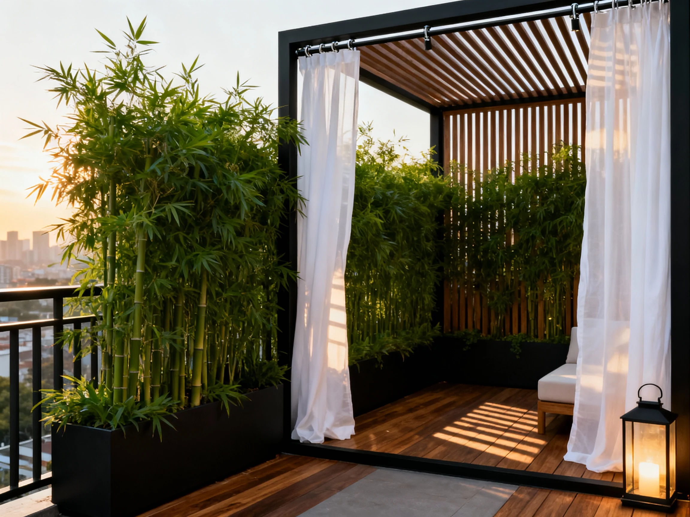 Let accessories be intentional: a single linen pillow, a stone incense holder, and a compact lantern. The result is a meditative nook where edges soften, light glows, and you forget there’s a city just over the railing.