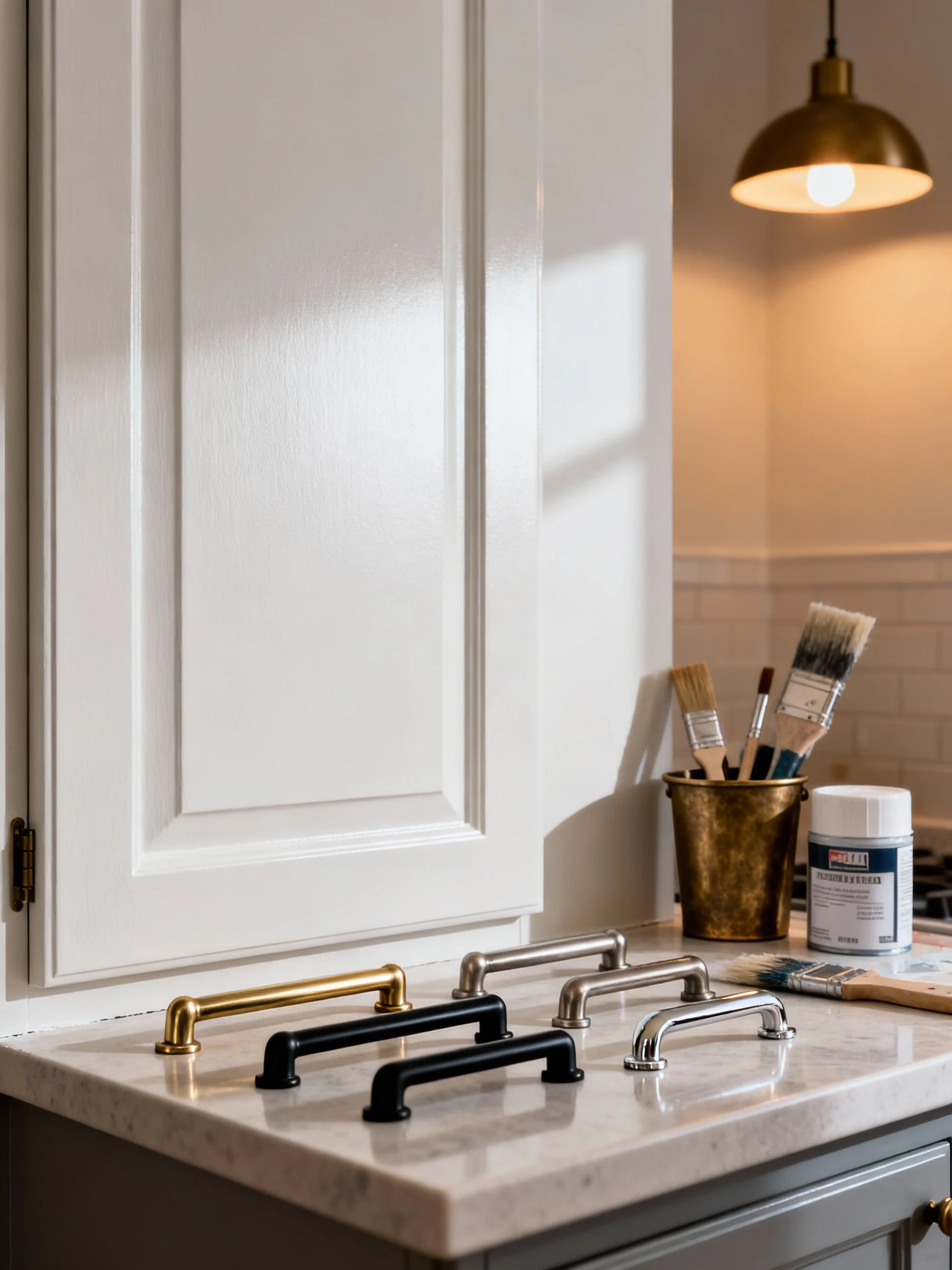 One cabinet-specific trick: add crown molding or a simple trim piece on top of uppers, then paint it the same color. It makes standard cabinets look custom in a single afternoon.