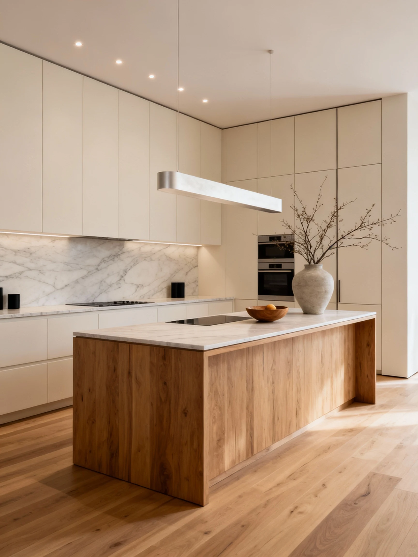 Picture walking into a kitchen that feels like a cozy cafe at 10 a.m. It’s calm, creamy, and intentionally simple, but not cold.
