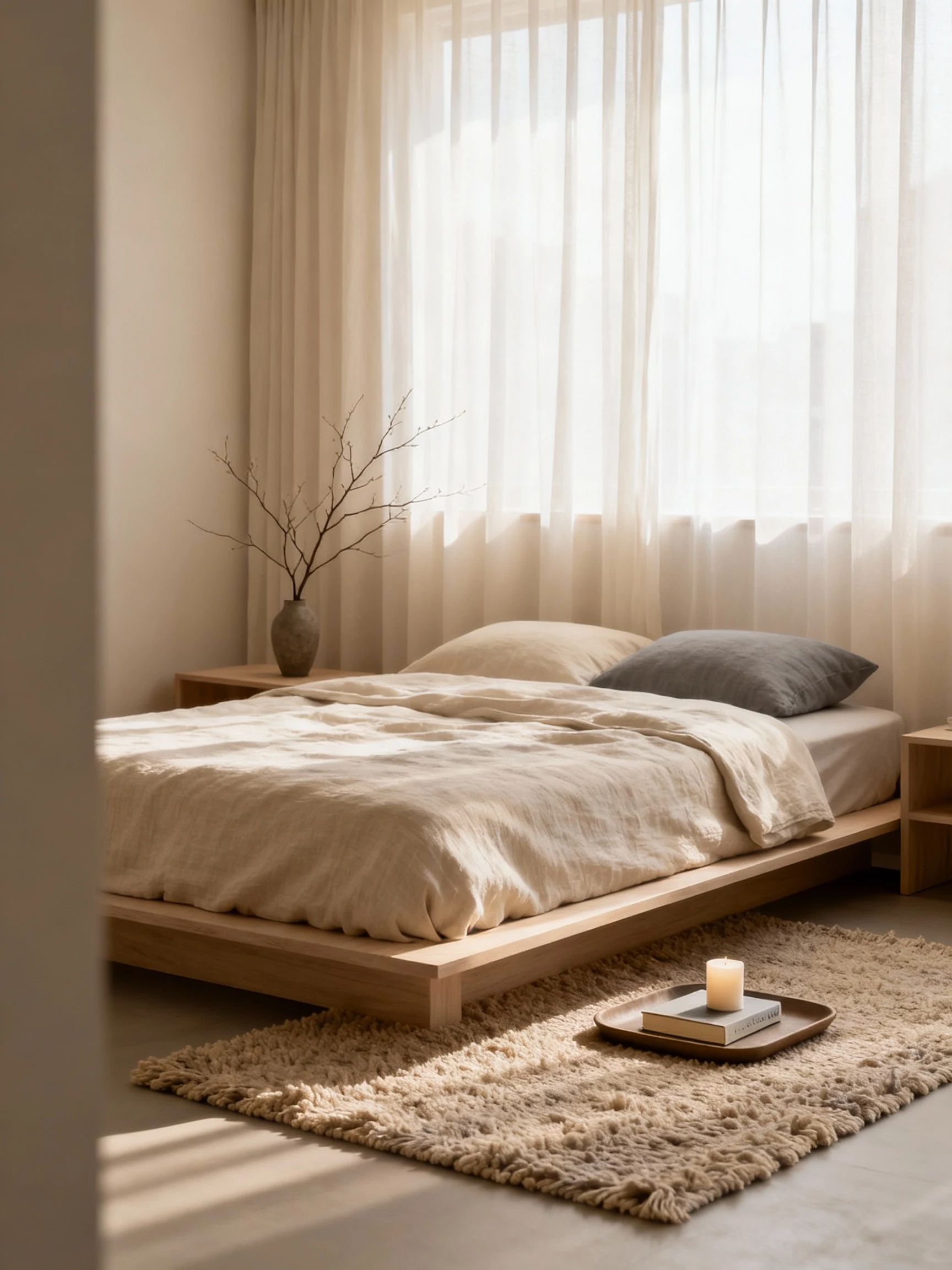 3) The Floor-Living Retreat: Low Bed, Tatami-Inspired Textures, Tea-Night Cozy